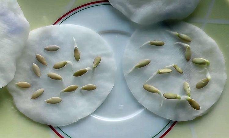 Пророщування – завершальний і найбільш нетрудомісткий етап передпосівної підготовки. Насіння викладають на шар вологої марлі або бавовняної тканини, зверху прикривають ще одним зволоженим шаром. Посадковий матеріал постійно перевіряють, відокремлюючи проклюнулися зернятка.