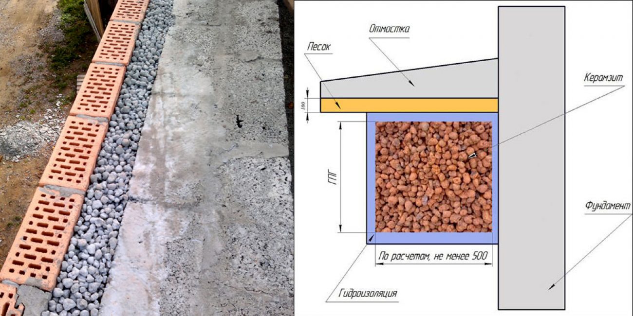 - керамзит: чудовий екологічно безпечний теплоізолятор; за рахунок високої пористості утворює повітряну подушку, надійно захищає від холоду підставу будівлі; вимагає додаткової гідроізоляції обмазочными або рулонними матеріалами; але висока вартість не дозволяє широко використовувати його в якості утеплювача для фундаменту;