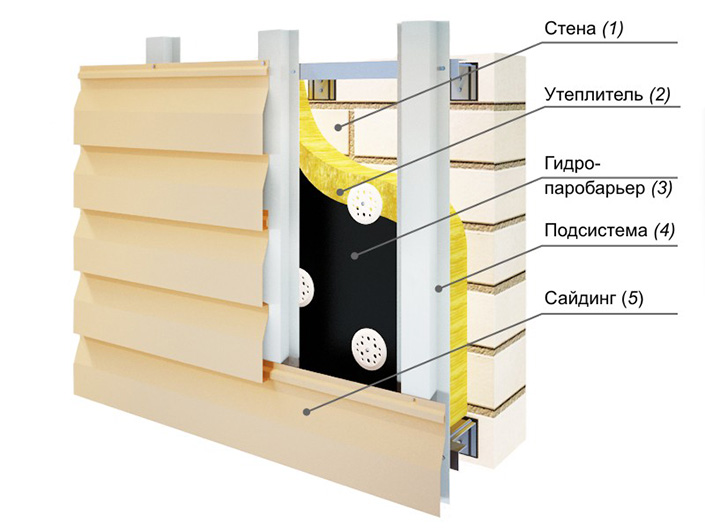 - з допомогою створення навісних вентильованих фасадів: кріпленням облицювальних матеріалів на каркас; між утеплювачем і стіною утворюється вентиляційний зазор, що оберігає їх від конденсату і скупчення вологи