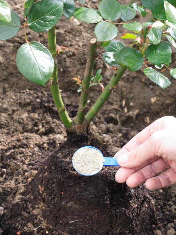 Застосовувати сухі добрива рекомендується після дощів або штучного зрошення. Розсипати добриво необхідно навколо рослини, відступивши 15 см від стовбура. Обов’язково після підгодівлі кущ потрібно полити.