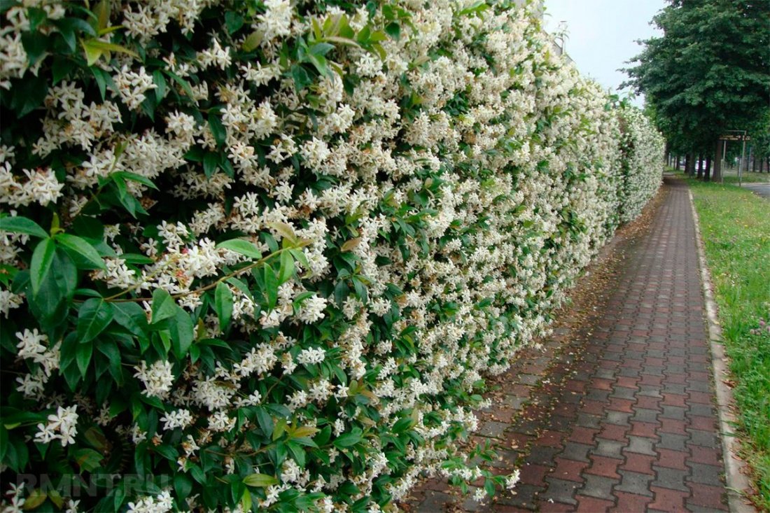 - Мексиканський жасмин – за сезон кілька разів вкривається квітами, видавничими цитрусовий аромат. Погано переносить обрізку, потребує укриття на зиму.