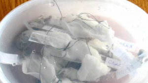 - набирають в ємність воду, на 1 л. насипають 25 гр. солі, переміщують туди насіння і викидають спливли