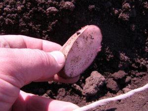 Щоб не зіпсувався насіннєвий склад розріз бульб проходить перед початком засадження. Тільки тому, що для насіння вибиралися найбільш великі екземпляри, що проростання вийде якісним.