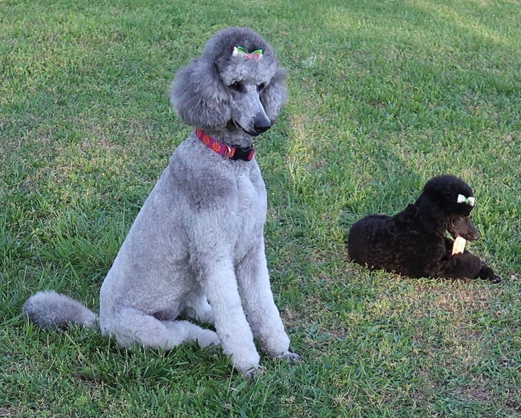 Таке забарвлення являє собою будь-які відтінки сірого кольору, але повністю чорні або білі волоски не повинні бути присутніми. Домогтися такого забарвлення потомства пуделя буває нелегко, часом це займає кілька років.