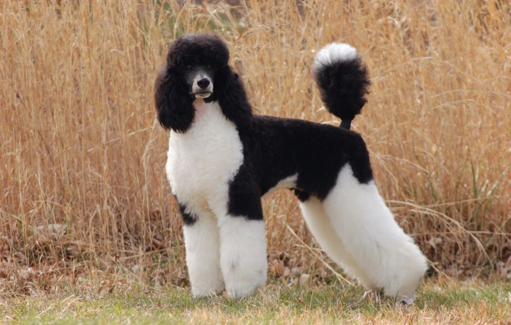 Такий пудель може мати будь-яку забарвлення з присутністю білих плям. Як правило, вони бувають на животі, лапах, грудях.