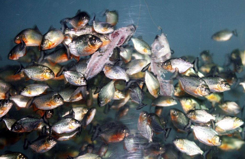 Спростування: піраньї не полюють за таким принципом.