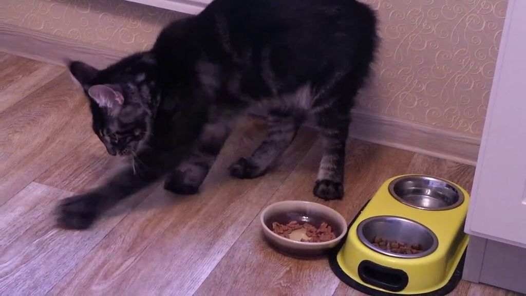Господарі вихованців найчастіше купують миску для їжі і води слитную. Один ніяковий рух і на підлозі розлилася вода. Кіт інстинктивно бачачи калюжу, розуміє, що потрібно приховати сліди злочину. І краще, ніж перекинути на неї корм не вигадує.