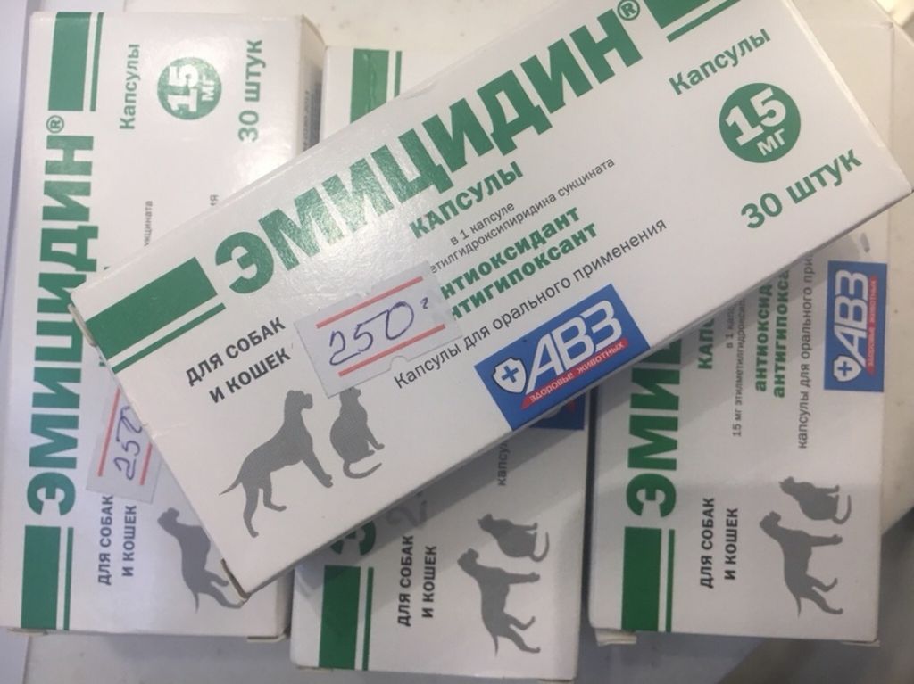 Эмицидин – це препарат, який сприяє нормалізації кисневого обміну в організмі тварини. Він відноситься до групи антиоксидантів. В якості основної діючої речовини виступає 2-етил-6-метил-оксипиридин сукцинат.