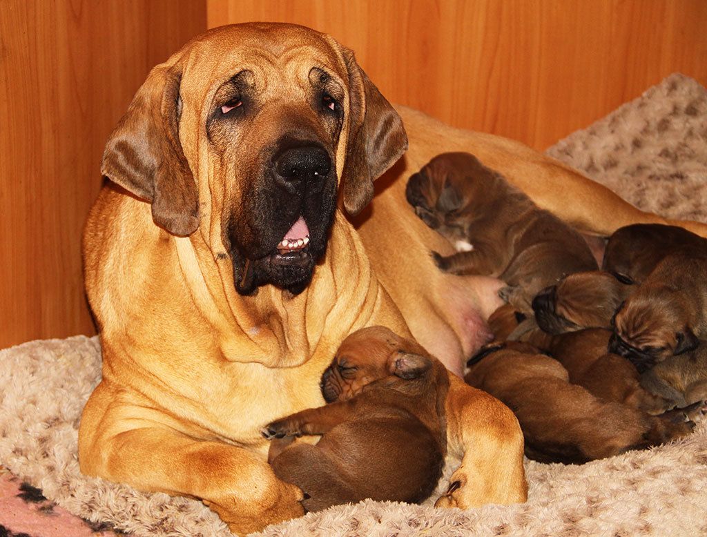 - португальських і англійських мастифів, передали новій породі велику спину і череп;