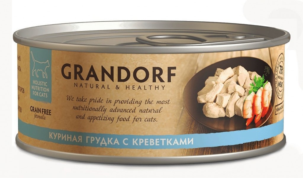 Сухий вигляд і консерви фірми Grandorf підходять абсолютно для будь-якої породи домашнього вихованця. Завдяки європейським розробникам харчування повністю складається з натуральних продуктів. Його можна давати і кошенят та дорослих котів.
