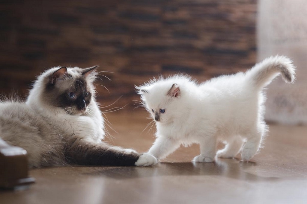Цікаве, що rag doll cat народжуються однотонними, без плям. Вони з’являються лише через тиждень.