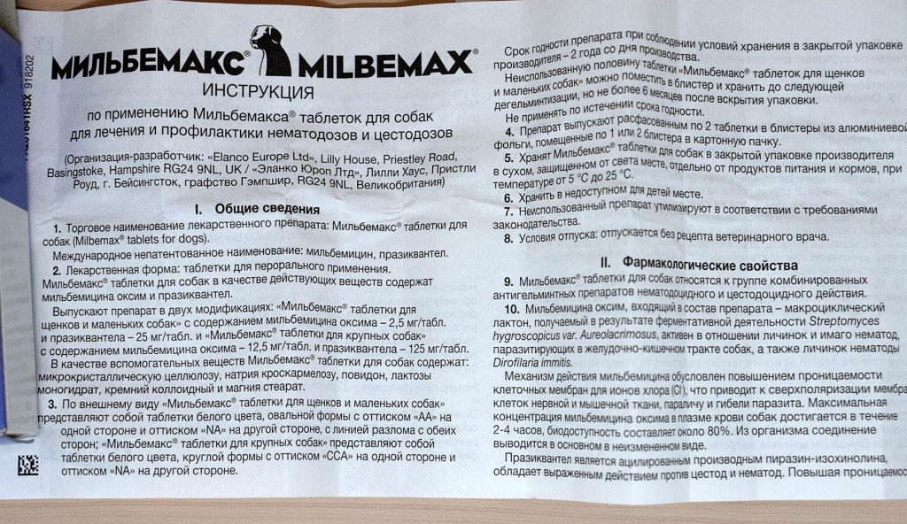 Інструкція мильбемакс для собак, стверджує, що таблетки є безпечними для усіх собак
