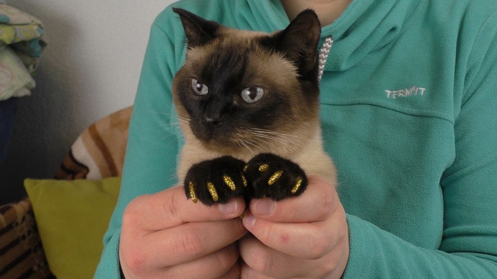 Найкращий спосіб. На кігтики наноситься нетоксичний, розроблений ветеринарами клей, на який фіксуються силіконові наклейки відповідної форми. Нешкідливі, представлені в різних колірних гамах.