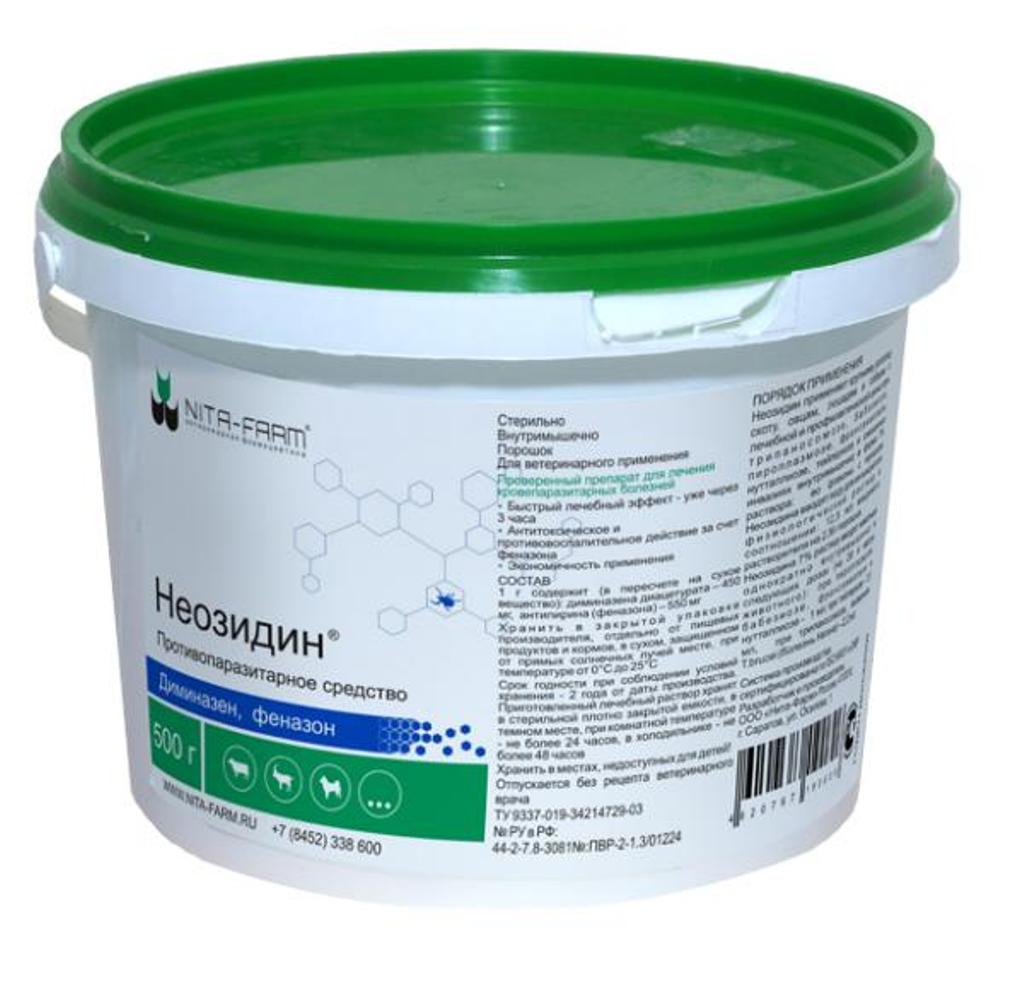 Дія Неозидина запускається через 3 години після введення і триває до 24 годин. Виводиться з сечею. Накопичується в печінці та нирках. Виявляється в молоці годуючих собак.