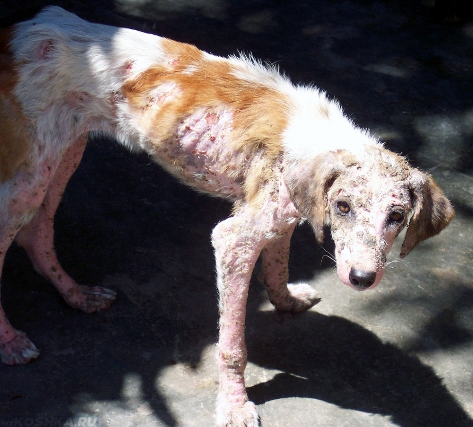 Поширені симптоми піодермії — ураження шкірного покриву собаки
