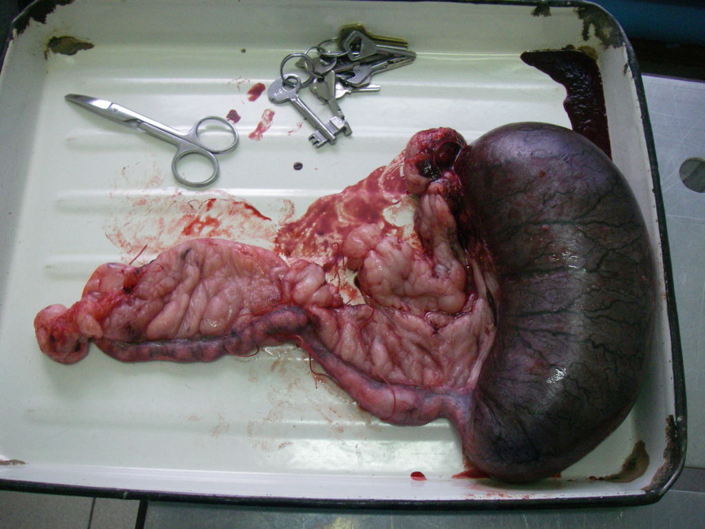 Шийка матки закривається, і утворена слиз з гноєм не може вийти назовні. Інфікована рідина накопичується в матці. Уражений орган сильно збільшується в розмірі. Стінки розтягуються і, у відсутності термінової медичної допомоги, розриваються. Наслідком є захворювання перитоніт (запалення очеревини) і загибель вихованця.