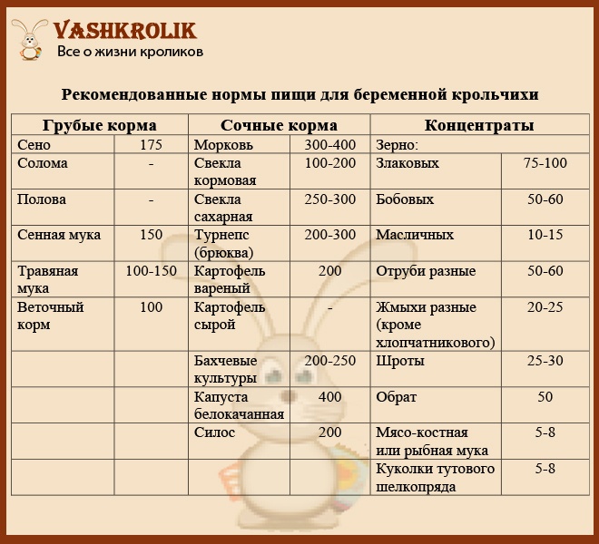 | Раціон харчування кролиці після окролу в день | |