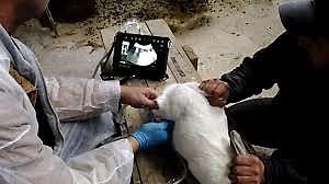 | У вагітної самочки змінюється поведінка. Вона стає тихою, обережною, не підпускає самця. Іноді дуже агресивно реагує на господаря. Відмітна риса – кролиця починає «гніздиться» (носить сіно в зубах, щипає пух з себе). Часто майбутня матуся починає викидати звичну їжу з годівниці, тим самим даючи зрозуміти, що пора міняти її харчування. Крім цього, вона починає більше пити. | Кролицю зважують перед злучкою і в перші два тижні передбачуваної вагітності. Вона буде набирати вагу – приблизно 200 – 400 грам за перші 14 днів. | Проводять не раніше десятого дня після спаровування (щоб не нашкодити тварині і малюкам в утробі). Краще, щоб пальпировал (промацував) кролицю досвідчений фермер або ветеринар. Для початківців заводчиків спочатку варто потренуватися. Однією рукою тримають самку за вуха і загривок, інший промацують обидва боки тварини. Приплід в утробі в цей момент відчувається як маленькі грона винограду. Низ живота кролиці щільний, стають великими рогу матки. | За допомогою УЗД-апарата можна зі 100% гарантією підтвердити факт кітності вже з шостого дня після запліднення. Метод передбачає транспортування тварин у ветеринарну клініку. Тому не виправданий при розведенні великого стада звірів на фермі. У домашніх умовах також проводити неможливо. |