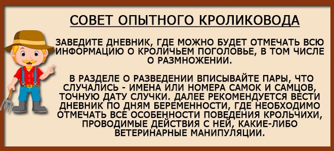При розведенні вухатих вихованців, головне постійно контролювати харчування та догляд за тваринами. Необхідно фіксувати будь-які зміни в поведінці, особливо у вагітних кролиць. Саме вони є основою для розмноження і отримання великого і здорового стада.