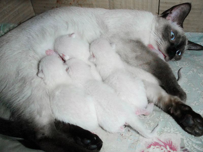 Варто знати, що кошенята народжуються білими і з часом набувають потрібний забарвлення.