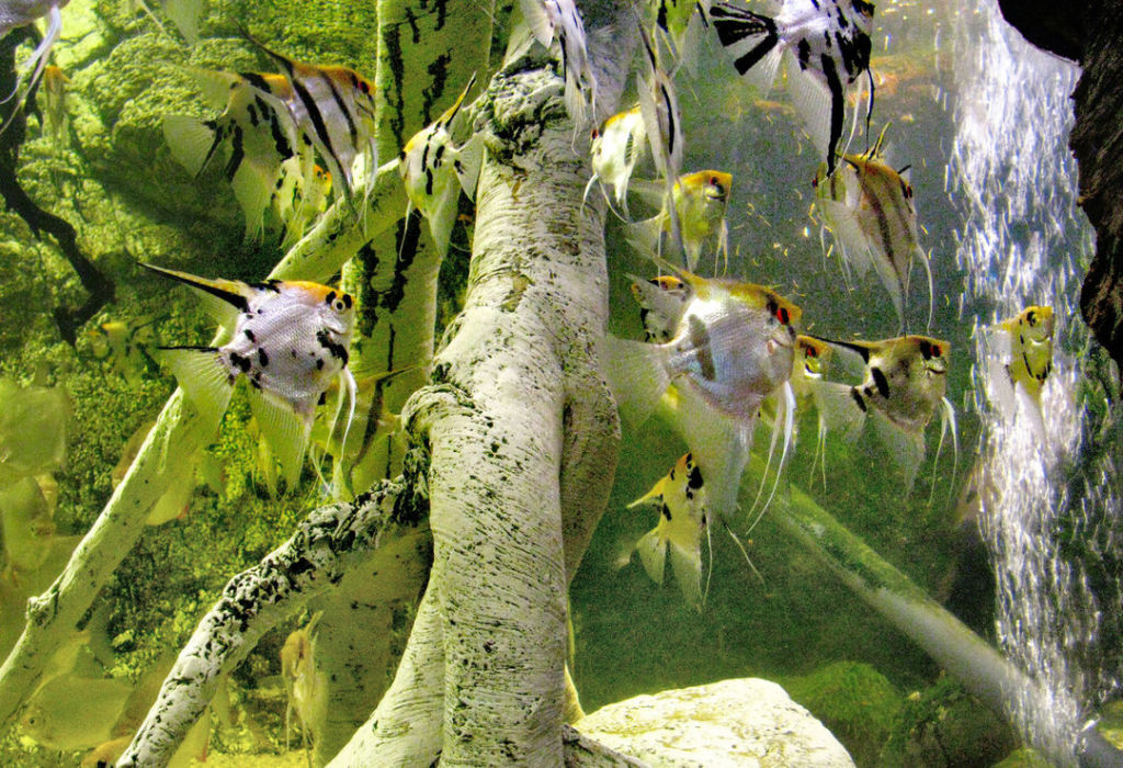 В акваріум можна помістити корчі, декоративні замки чи ущелини. Таке оформлення послужить скалярії як укриття. Головне при придбанні таких предметів виключити гострі кути, щоб надалі уникнути випадкових травм у риби.