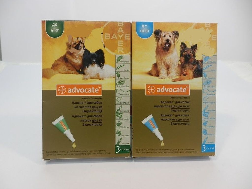 Краплі, до складу яких включені моксідектин і імідаклоприд. Призначені для боротьби з зовнішніми кровососними паразитами і внутрішніми круглими гельмінтами. Також Адвокат застосовують для профілактики дирофіляріозу.