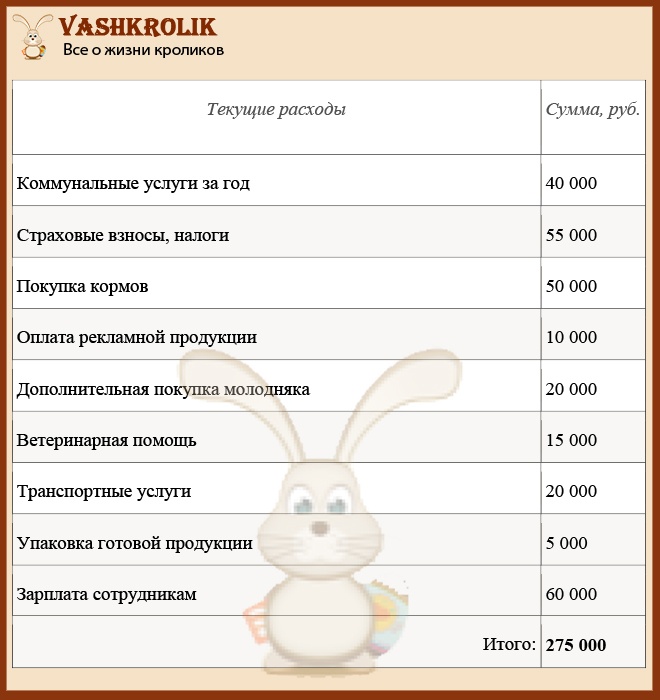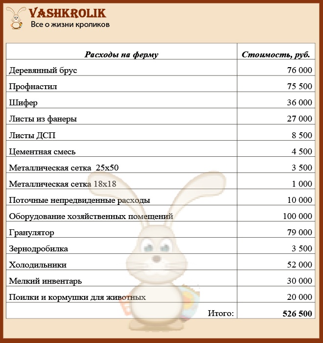 Нижче наводиться бізнес-план по кролівництву з розрахунками за нього. Точно прорахувати можна тільки в кожному окремому випадку, тому всі дані носять виключно інформаційно-показовий характер з приблизними розрахунками.