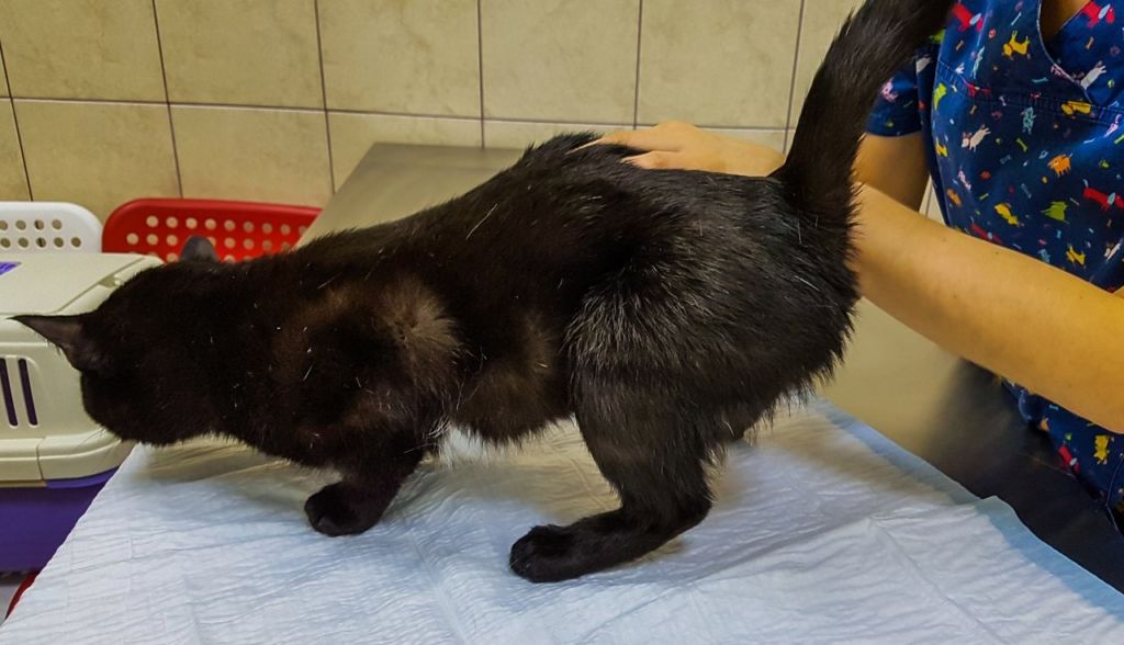 - Травми хребта. При переломі, тріщини і розтягуванні висока ймовірність повного і часткового паралічу задніх лап і хвоста. Травми кішки отримують при падінні з висоти, аварій з транспортом, попаданні під важкий предмет або ударі людиною. Симптоми виражені яскраво – деформація спини, знерухомлення, різкий біль, кровотечі внутрішнього і зовнішнього характеру, загальна слабкість організму, втрата апетиту, апатія.