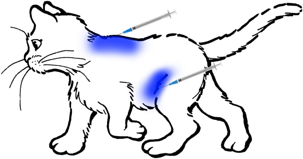 Підшкірні ін’єкції, як правило, болючіше внутрішньом’язових введень. Тому кішка повинна бути добре зафіксована.