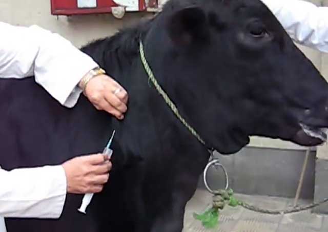 Як тільки корови стало погано, розведіть ½ пачки звичайної харчової соди в 3 літрах води і залийте їх корові. Голову потрібно тримати, щоб вона проковтнула розчин. Слідом дають від 0,5 до 1 літра олії (соняшникової) і масажують рубець. Масло повинно бути теплим.
