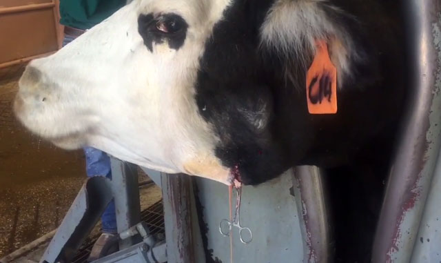 Схильний до хвороби і язик корови, який під дією грибка стає «дерев’яним», збільшується у розмірах, а у важких випадках випадає назовні.