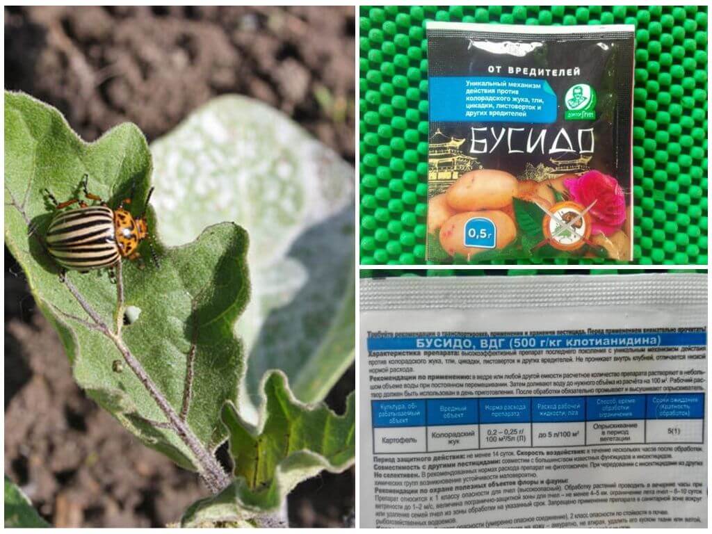Бусідо від колорадського жука використовується для обробки посадкового матеріалу, обприскування зеленої частини рослини в період вегетації. Активним компонентом виступає сучасний інсектицидний речовина з широким спектром дії. Вбиває за кілька секунд личинок різних віків, дорослих жуків, масове знищення шкідників відбувається протягом 2 тижнів.