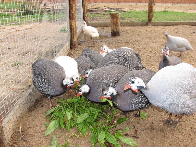- Пропонувати вихованцям в їжу, справді, припустимо все що завгодно. Утримувати їх теж можна в будь-якому приміщенні і клітинах – вони спокійно приживаються, не вимогливі і можуть обходитися без пташника. Але якщо є бажання отримати від них багато, то рекомендують дотримуватися запропонованої інструкції по грамотному утримання цесарок. Чим годувати їх розглянемо нижче.