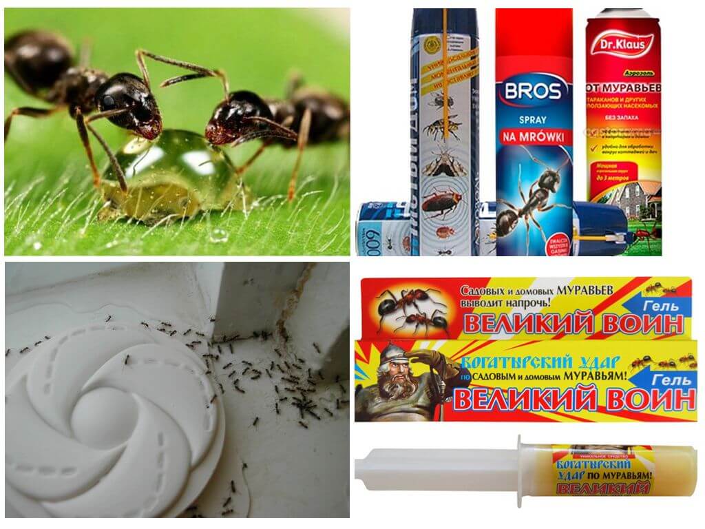 - Хімічні засоби у вигляді гелів, володіють більшою ефективністю, т. к. після нанесення його в зонах проживання шкідників частинки отрути потрапляють на їх лапках у гніздо і повністю знищують все населення мурашника за 2-8 тижнів. Добре зарекомендували себе Великий воїн, Чистий будинок і Раптор.