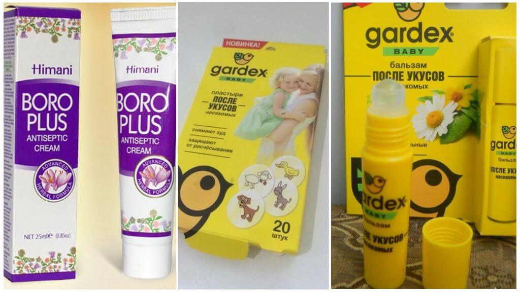 - Рятувальник, Боро Плюс – креми, що містять термальну воду, рослинні і ефірні масла і корисні мікроелементи, які необхідні для загоєння ранок після укусів комарів, зменшення набряків і пухирів. Ціна 100-200 руб.