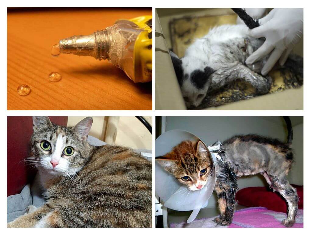 Речовиною рясно змочується ватний диск, який прикладається до забрудненого ділянці. Після обробки слід відмити кота від клею шампунем для домашніх тварин або милом.