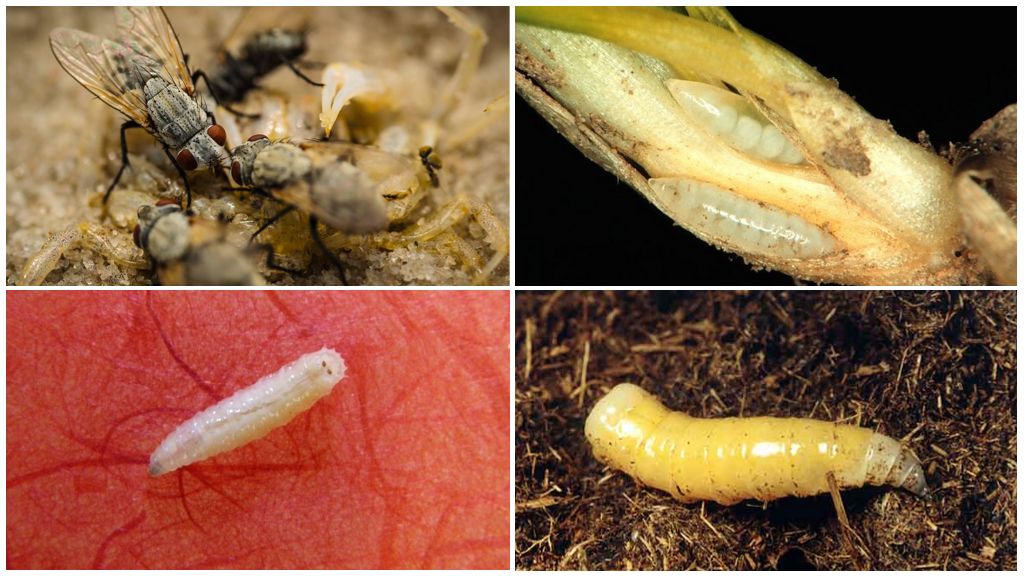Личинки м’ясної мухи розвиваються в м’ясі, рибі, субпродуктах. Вони виконують основну роль у розкладанні трупів. Проходять кілька стадій розвитку, кожен раз збільшуючись в розмірах. Зростають стрімко, за 3 дні збільшуються в розмірах від 1 мм до сантиметра. Можуть мешкати в пошкоджених тканинах живих звірів, роблячи численні ходи.