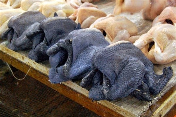 Курка, яка неймовірна вугільно-чорна, не має взагалі інших кольорів. Це стосується не тільки пера, гребеня, дзьоба, лап, очей, але і кісток, м’яса і нутрощів. Єдине що відрізняється від чорного кольору це кров курки. Втім, вона теж незвично темного кольору. Фото такої птиці сприймається як після редагування Фотошопом.