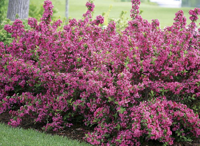 Вейгела – це один із самих красиво квітучих декоративних чагарників. Цвіте з середини квітня, а розпустилися квітки можуть бути білими, червоними або рожевими. У південних регіонах Росії добре переносить зиму і не потребує укриття. Однак в середній смузі і в північних регіонах країни рослина гине, тому садівники восени обов’язково повинні захистити кущ.