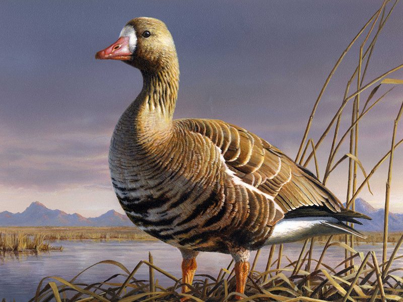 - Ще одним популярним видом дикого гусака вважається полярний гусак. Ці водоплавні птахи мають досить великі розміри (80 см в довжину і до 5 кг ваги). Володіють красивим білосніжним оперенням, а на кінчиках крил знаходяться рівні чорні смуги. Зустріти такого красеня можна на Арктичному узбережжі. У Росії ж полярник зустрічається досить рідко.