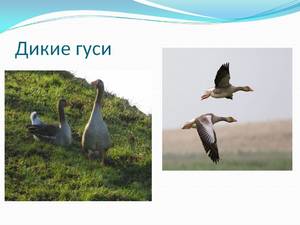 - Незважаючи на те, що цих птахів прийнято вважати водоплавними, більшу частину часу вони проводять на суші — це і є основною відмінністю диких гусей від їхніх побратимів — лебедів і качок.