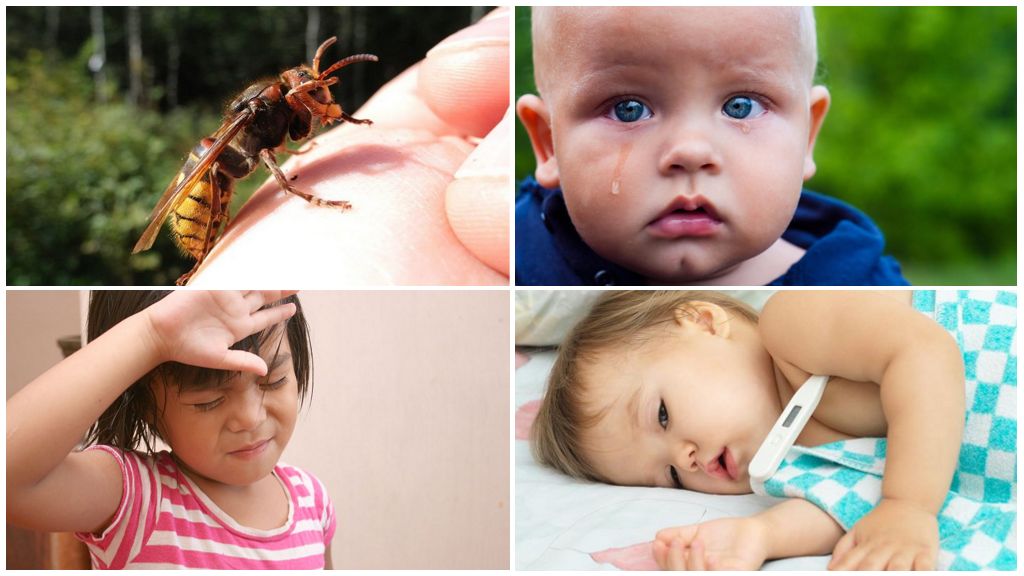 Якщо вкусила оса в чоло, на вухо, реакція буде мінімальною, оскільки знижується ймовірність попадання отрути в системний кровотік у великій кількості. Достатньо просто надати першу допомогу дитині, обробити ранку антисептиком.