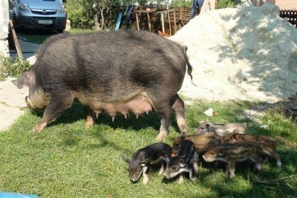 Народжуючи не менше 12 поросят, вона здатна їх вигодувати своїм молоком. Виживаність практично 100%. У теплу пору малюки вже здатні на 7 день самі щипати травичку. Характеристика породи просто вражаюча.