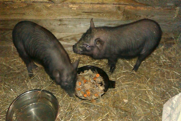 Але не треба забувати і про додаткові кормах. Ці тварини, на відміну від багатьох інших порід свиней, володіють хорошим кишково-шлунковим трактом. Абсолютно спокійно можуть вживати в їжу не дроблене зерно. Спільно з овочами воно буде давати хороший приріст. А додавання молочної продукції сприяє поліпшенню смакових якостей м’яса.