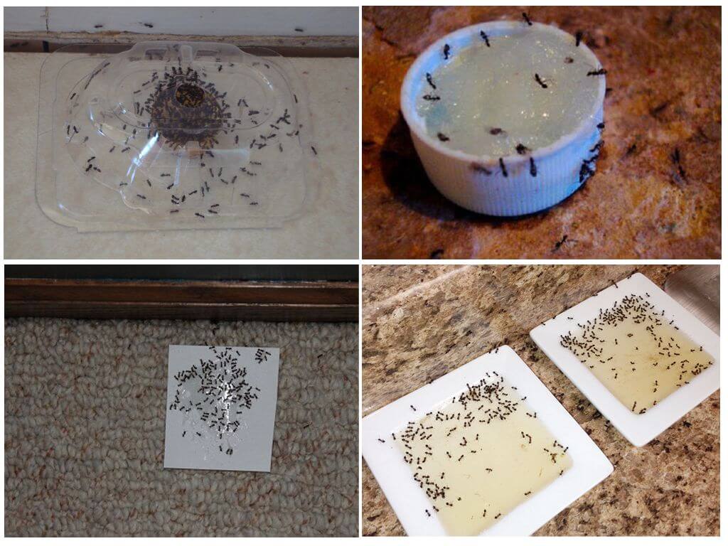 Існує безліч народних способів, що допомагають з допомогою приманок заманити муравйов в пастки, після чого вони гинуть. Діє це тільки на робочих особин, але зате кількість їх різко зменшиться.