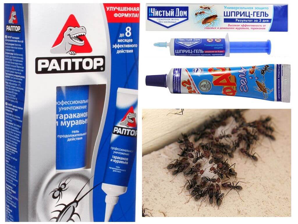 Більш ефективні засоби від мурах – це гелі. Одним з головних переваг є простий спосіб застосування. Достатньо всього лише нанести гель пунктирною лінією в місцях, де найчастіше зустрічаються шкідники. Зазвичай засіб не має запаху, легко змивається ганчіркою і не залишає помітних слідів. Однак не варто поспішати позбуватися від отрути, так як чим більше часу вона буде доступною для комах, тим ефективніше буде результат боротьби.