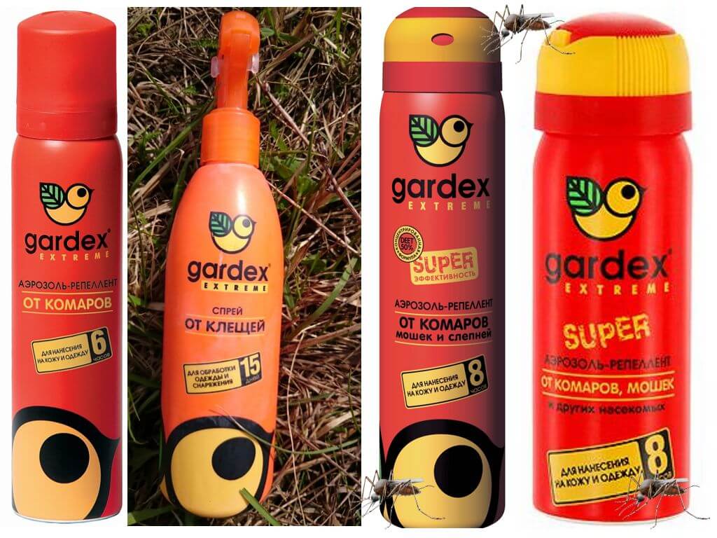 - Спрей на натуральній основі – Гардекс натурін, діє на основі ефірних масел – герані, кумарину, цітронелли, мінімальна кількість ДЕТА 10%. Продукцію можна використовувати дітям з 3 років. Захист діє близько 3 годин. Застосовувати слід не більше 2 разів на добу.