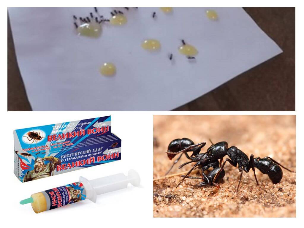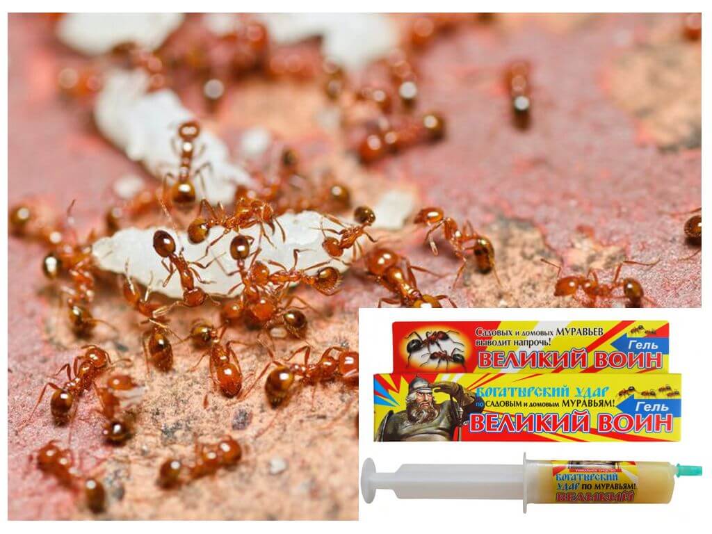 Від мурашок можна позбутися, якщо знищити їх царицю і личинки. Зробити це нескладно, коли є доступ до мурашника, але садові і домашні види воліють ховати гніздо. Перші будують будинки під камінням, а другі будують будинок подалі від людських очей. У цих випадках допоможе гель Великий Воїн від мурах і тарганів.