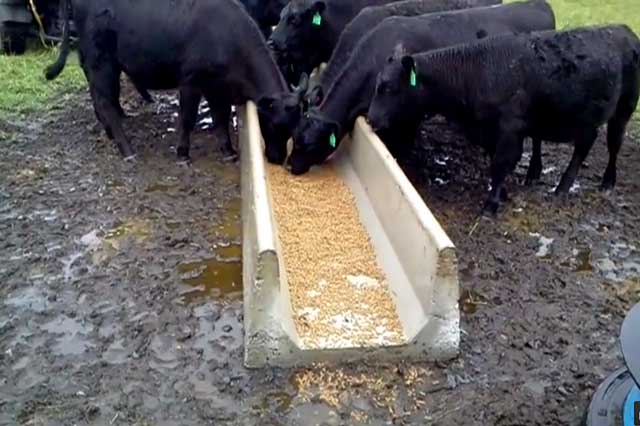 Годування зерном або комбікормом також може відбуватися на вигульних зонах. Навіть, якщо зелені в достатку, молочним коровам і особинам з телям потрібно додаткове харчування. У цьому випадку пристосовують автоматичні годівниці. Плюси в тому, що безперервна подача їжі, але невеликими дозами.