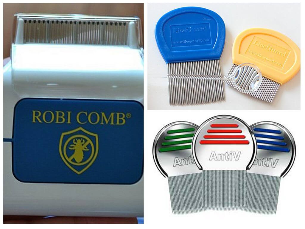 - Електронний гребінь від вошей і гнид RobiComb – новинка серед аналогічної продукції. Гребінець має широке пластмасова основа, дрібні короткі металеві зуби. З обох сторін пластмасові виступи, щоб зуби не торкалися шкіри голови. Під час використання між зубами виробляється струм. Комаха, потрапляючи на гребінь, не мають можливості знову опинитися на волоссі. Ефективний гребінець дозволяє вивести паразитів за 1 процедуру. Розчісувати можна тільки сухі волосся.